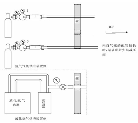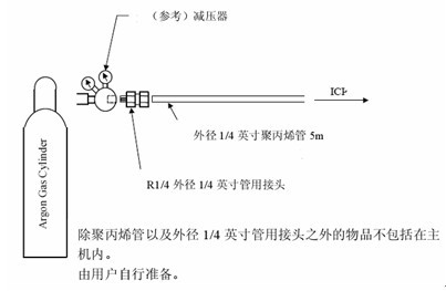 氬氣瓶到儀器的距離應小于 5m,配管如下圖所示,要注意氬氣瓶的妥善放置,防止傾倒