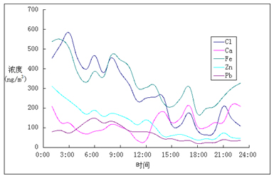 常規(guī)大氣重金屬監(jiān)測手段只監(jiān)測重金屬元素的日平均濃度的測量,但是大氣重金屬隨著氣象參數(shù)與溫度在每天的不同時間段有著較大的變化,日平均濃度無法反應(yīng)這些變化。大氣重金屬實時在線監(jiān)測可以實現(xiàn)每天重金屬濃度的小時值測定,有利于分析總結(jié)大氣重金屬和非重金屬元素的日變化規(guī)律。