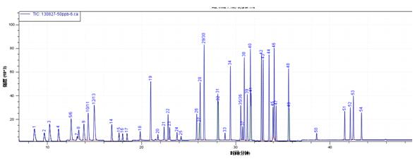 采用GC-MS 6800氣相色譜-質譜聯(lián)用儀,測試土壤、沉積物或固體廢物中的多環(huán)芳烴、多氯聯(lián)苯、有機氯農(nóng)藥、揮發(fā)性有機物及鹵代烴類物質,各物質分離效果良好,靈敏度高,線性范圍寬,能達到較好的測試效果。